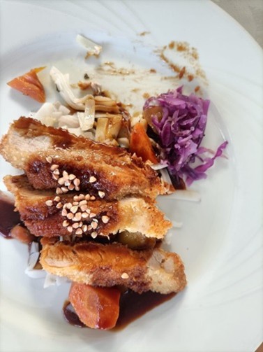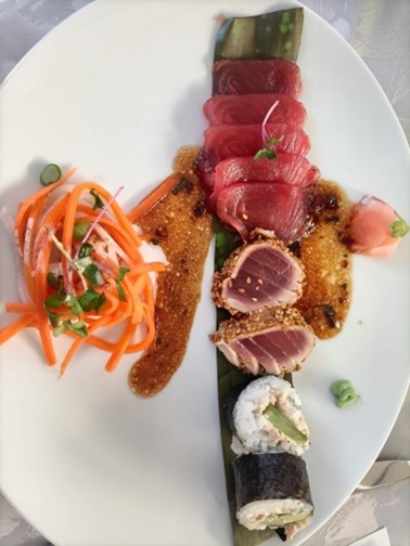 Dans les coulisses du restaurant d’application du lycée Escoffier, c’est une véritable chaîne de solidarité qui s’est mise ne place : élèves de CAP pâtisserie, élèves de 1STHR, élèves de BTS STHR. Les 80 convives ont pu savourer des cocktails originaux, découvrir ou redécouvrir les saveurs nippones : soupe miso, tempura de crevette, tonkatsu de porc et son kimchi, dessert à base de shiso, yuba et yusu, thé matcha, pâte de haricots rouge et de marron.
