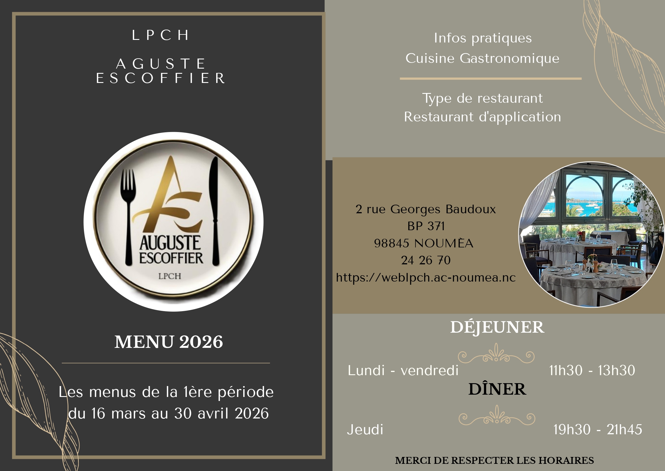 Les menus du restaurant pédagogique
